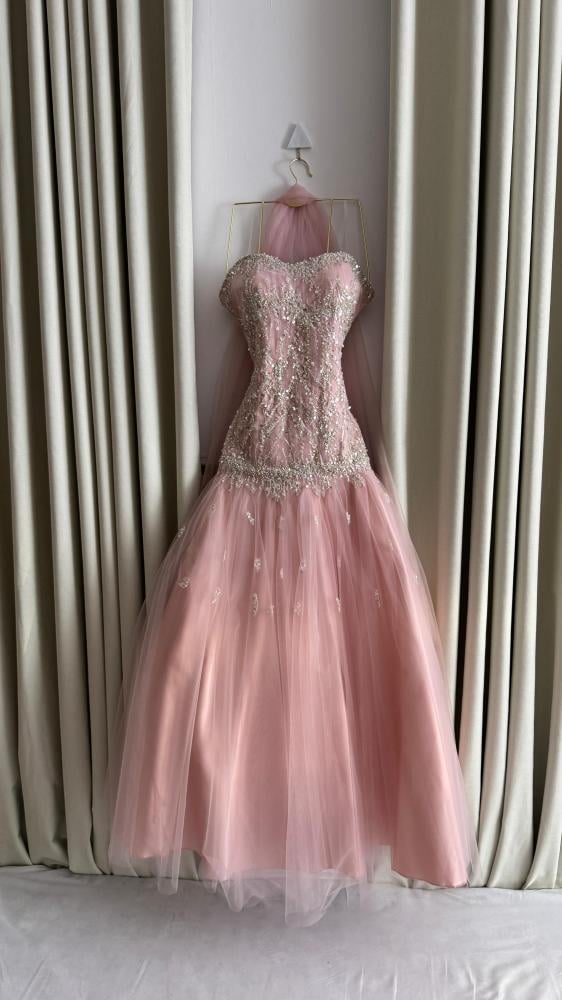 فستان تل مع تطريز خرز