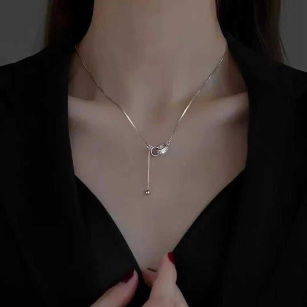 تألقي برقي استثنائي مع قلادة لمسة الأناقة المصنوعة من الفضة الخالصة والمطلية بالذهب. تصميم أنيق بحلقة دائرية مرصعة بزركون لامع يعكس البساطة والفخامة في آن واحد متوفرة بلونين الذهبي الملكي والفضي الكلاسيكي لتناسب كل ذوق وكل مناسبة.
